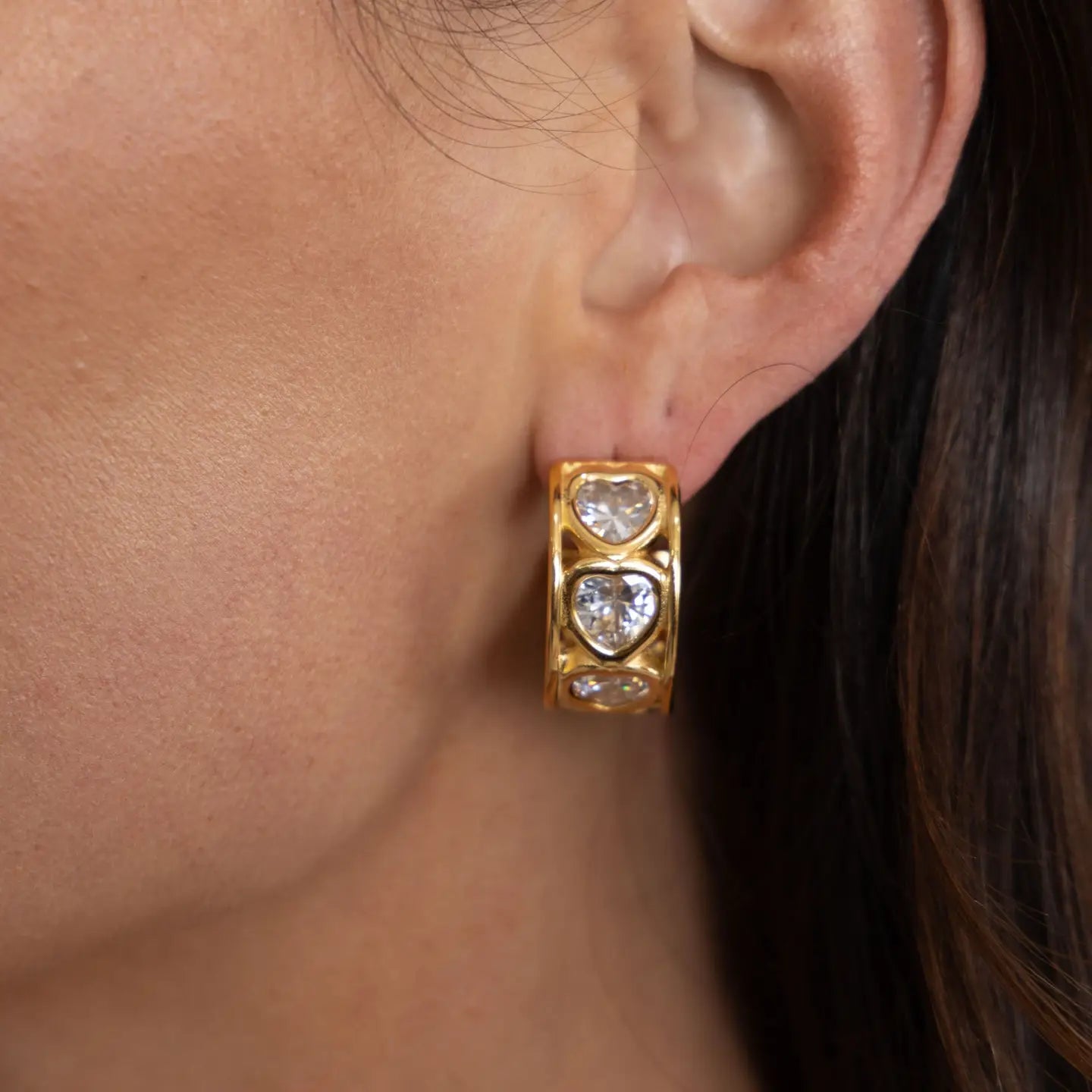 Introducing the Bezel Heart Hoop - the perfect accessory for expressing your love! These charming hoops feature heart shaped stones that add a touch of romance to any outfit. Elevate your style and spread the love with these stunning earrings.