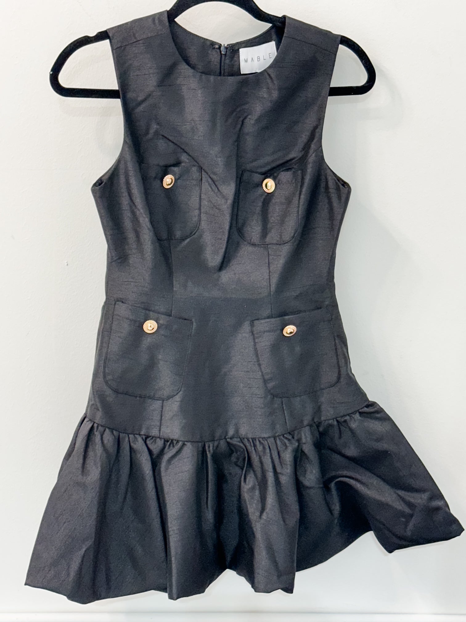 Turn heads this holiday season in the Noir Holiday Dress- a stunning blend of classic elegance and festive charm. This black dress features a playful ruffle skirt designed for effortless movement and a flattering silhouette. Gold statement buttons highlight the bodice, adding a luxe, eye-catching touch perfect for parties, dinners, and every celebration in between. Pair it with your favorite heels and shine all night long.