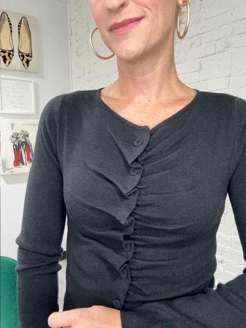 A more modern take on a classic black sweater- meet our Pleated Sweater top. Perfect for layering, dressing up or down. Pair with a fun skirt, or even wear with denim. Endless possibilities.